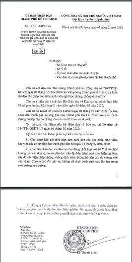 - Toàn bộ sinh viên của nhà trường sẽ nghỉ học thêm 01 tuần (từ ngày 10 đến hết ngày 16.02.2020)