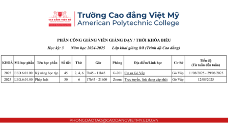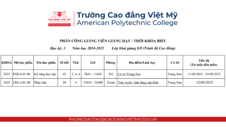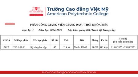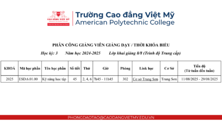 📧 Email và Google Chat: phongdaotao@caodangvietmy.edu.vn